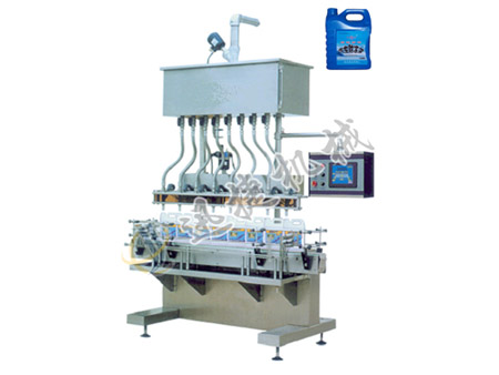 本機(jī)采用PLC可編程控制,配以觸摸屏人機(jī)界面系統(tǒng),采用常壓式固定流道參數(shù),控制灌料時(shí)間來實(shí)現(xiàn)不同計(jì)量的灌裝。本機(jī)采用重力式灌裝。適用于雨刮水、防凍水、潤滑油等液體物料的灌裝。