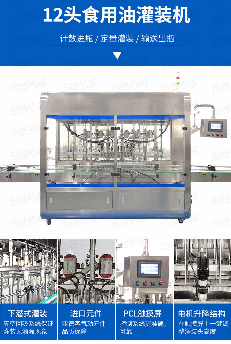 該系列玻璃瓶灌裝機(jī)采用容積式計(jì)量灌裝原理,適用于各種規(guī)(100ml-1000ml)的南瓜籽油、榛子油、牡丹籽油、芝麻油、核桃油、山茶油、亞麻籽油、棉籽油、橄欖油、大豆油、玉米油、菜籽油等食用油灌裝。設(shè)備采用伺服驅(qū)動(dòng)活塞計(jì)量,保證了 1‰的灌裝精度,在保證灌裝精度的同時(shí),提高了 20%-35%灌裝速度,操作簡(jiǎn)單,維護(hù)方便,節(jié)省人工成本,生產(chǎn)效率更高。