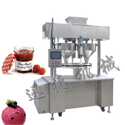 然后,將辣椒醬灌裝機(jī)通電檢查,打開灌裝機(jī)的電源總開關(guān),電源接通后,三相四線380V,并且必須接零線。要檢查減速機(jī)的轉(zhuǎn)向是否正確,轉(zhuǎn)向以攪拌機(jī)傳動鏈所標(biāo)示的方向?yàn)闇?zhǔn),如不符合請在電源線的接頭上互換。其次,按動灌裝機(jī)的攪拌機(jī)開關(guān)啟動,檢查傳動方向符合箭頭所示,正確后才能按動工作開關(guān)啟動光電感應(yīng)器,程序正常后才能將物料倒入料斗內(nèi),并啟動攪拌機(jī)。由于該辣椒醬灌裝機(jī)是以容積式計量方式,剛開始有一個填充過程,因?yàn)閼?yīng)先用容量較大的容器置于工作臺上,才能開機(jī)灌裝,通過灌出量的多少,用戶自行調(diào)整其所需的灌裝量。在調(diào)節(jié)的過程中一定要按照使用說明進(jìn)行調(diào)節(jié),以免對設(shè)備造成損害或者對于產(chǎn)品灌裝造成浪費(fèi)。