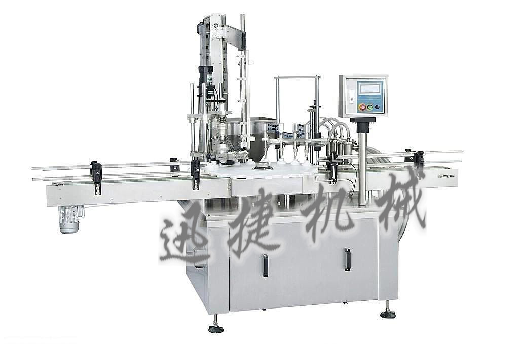 自動灌裝機加蓋機構的主要作用是使蓋子在到達焊接系統(tǒng)之前,實現對預送機構傳送塑料蓋子的自動化理蓋、自動化排隊和自動化輸出,使輸出的塑料蓋子處于正確的焊接位置,輔助完成加蓋的整個過程。 其原理是:加蓋機構采用蝸桿蝸輪傳動和電動機無級調速來改變蝸桿輸出的速度,因自動灌裝機蝸輪上的軸與理蓋機構底部的盛蓋器通過螺紋聯接,所以其盛蓋器隨主軸而轉動,由于盛蓋器內部放有塑料蓋子,在轉動的同時由于圓周力的作用使塑料蓋子往四周分散,在理蓋器底部的紗織底盤沿著噴氣口的方向,將這些蓋子移到繞在理蓋器外圈的滑槽上。